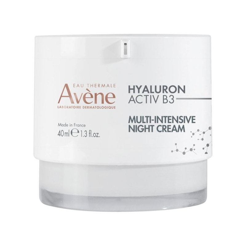 Multi intenzivna noćna krema sadrži retinal, čistu hijaluronsku kiselinu i niacinamid koji djeluju na uzrok starenja*. Koža je čvršća, bore su smanjene. S godinama se sve ubrzava. Stanice stare, ali i šire ovu pojavu oko sebe. Time se dodatno ubrzava starenje kože. Dermatološki laboratoriji Avene stvorili su noćnu kremu Hyaluron Activ B3 Multi intenzivnu noćnu kremu koja sadrži retinal, čistu hijaluronsku kiselinu, ekstrakt Haritaki i niacinamid kako bi djelovali na uzrok starenja i produžili život stanica*. Ujutro, nakon buđenja, koža je zaglađenija. Nakon 2 tjedna, koža je obnovljena, čvršća i bore su smanjene**. Prava obavijajuća noćna njega s nježno mirisnom teksturom donosi ugodu koži, bez masnog završetka. Njezina blago narančasta boja povezana je s prisutnošću retinala.
